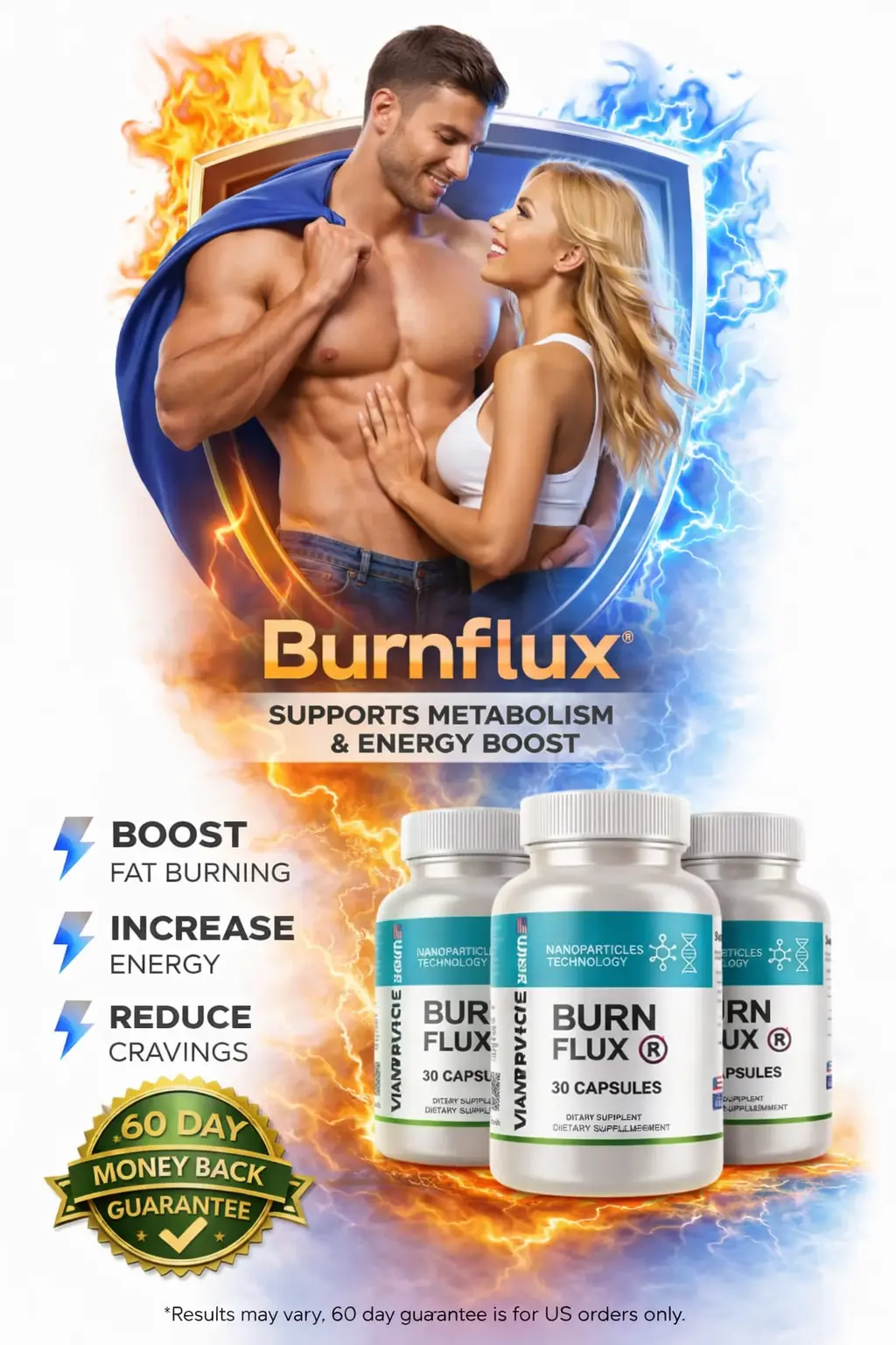 Backed by a 60-day money-back guarantee , you can try Burnflux completely risk-free. Either you see the transformation you want or you get every penny back.